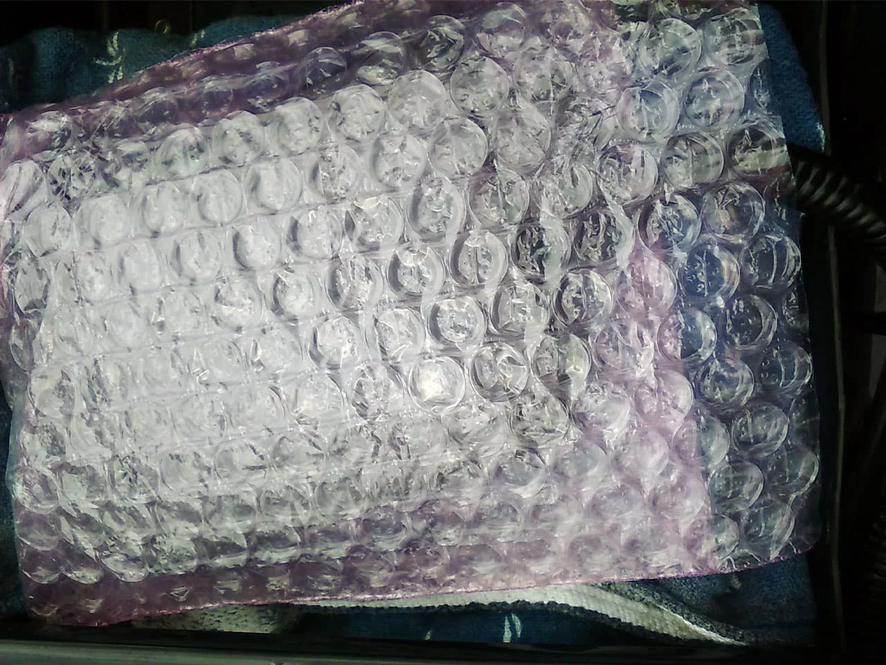 シートの下を開けるとウエスの上に厳重にプチプチに包まれた黒い物体。