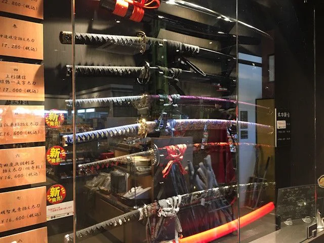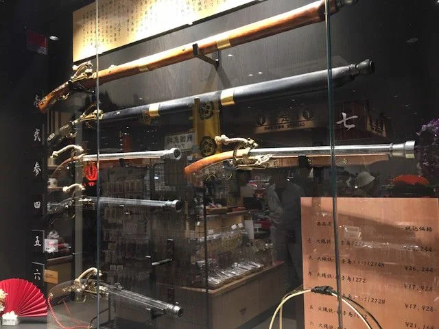 お土産コーナーで一番目を引くのは、火縄銃と日本刀の販売コーナー