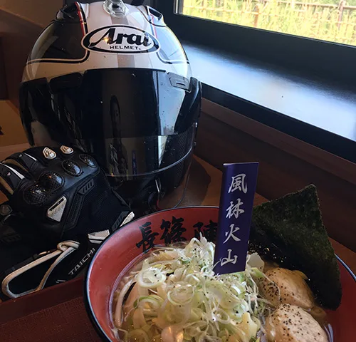 が、武将に関係なく食べたい味で決めたのが武田の鶏塩ラーメン。風林火山ののぼり付きなので写真撮影が欠かせません!!