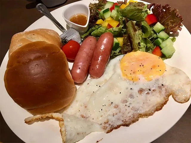 無料のコーヒーを片手に注文したモーニングプレートでお腹を満たす。