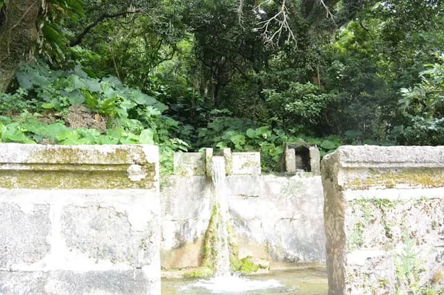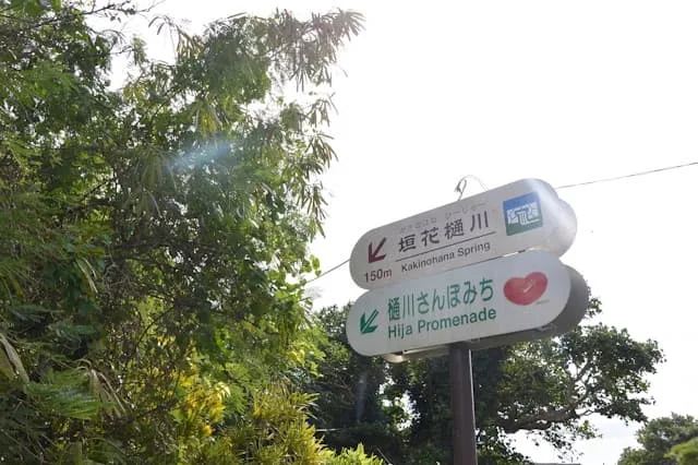 細かい道をちょこちょこ入ったところに垣花樋川の看板を発見。