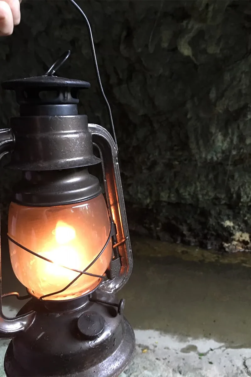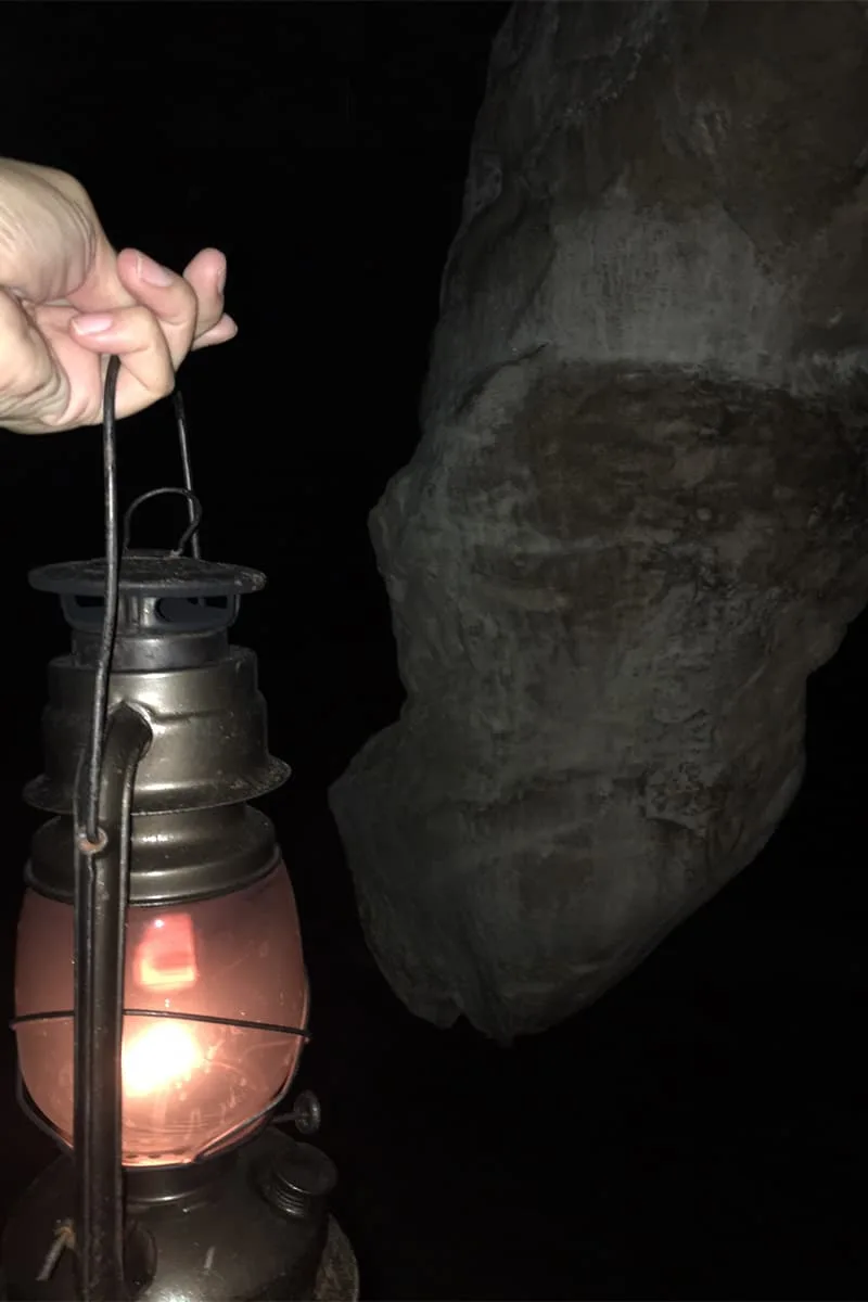ランタンを持って洞窟に入って貴重な鍾乳石を見たり探検気分満載。