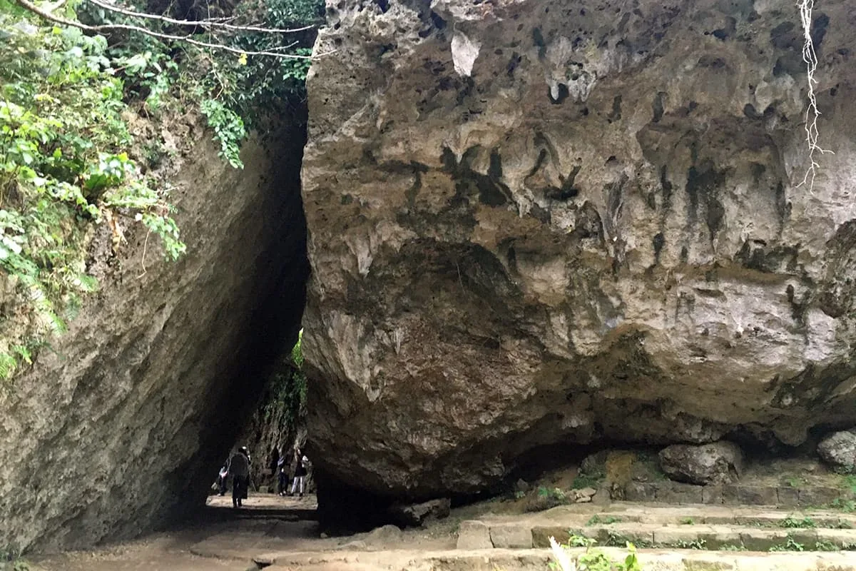 雨で濡れた斎場御嶽は、神聖な雰囲気