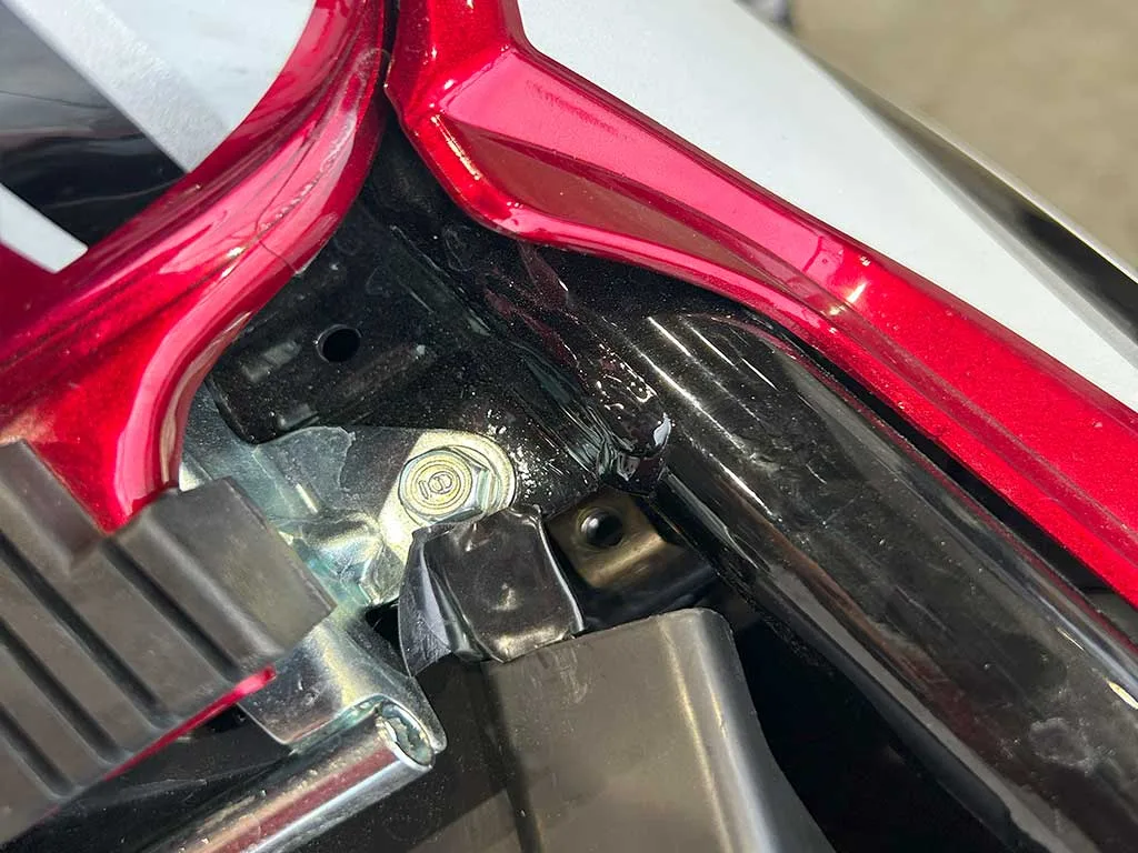 バッテリーのマイナス端子をとりつけバイクに乗る準備を整えます。