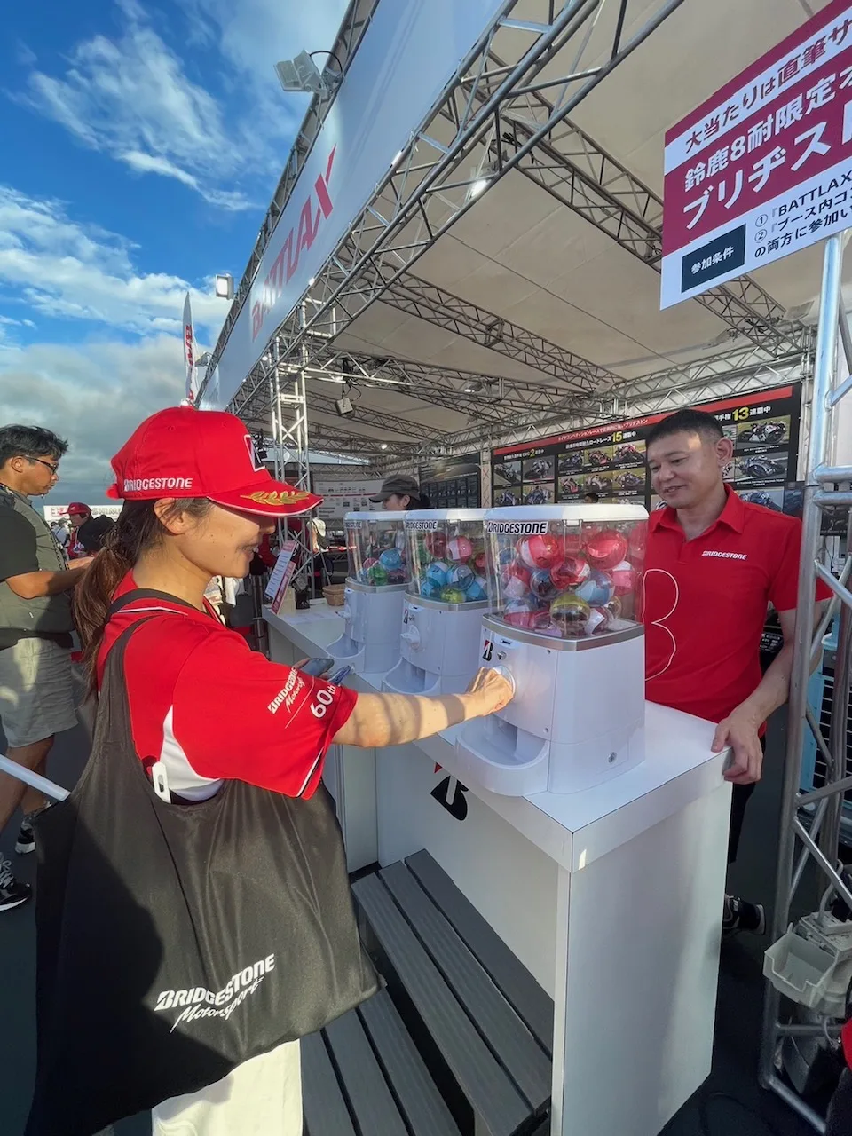 サーキットに着くとまずはブリヂストンブースで観戦グッズの引き換え。