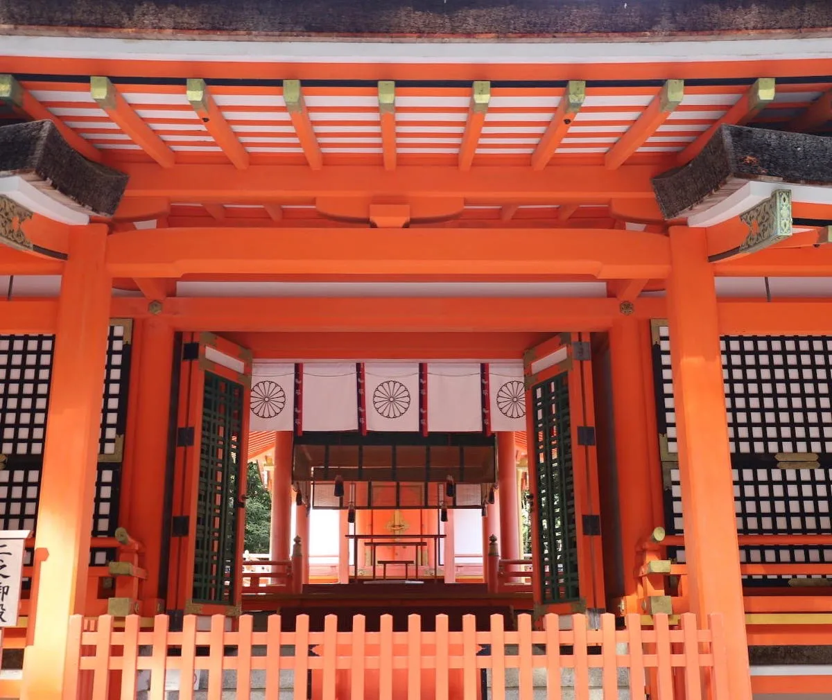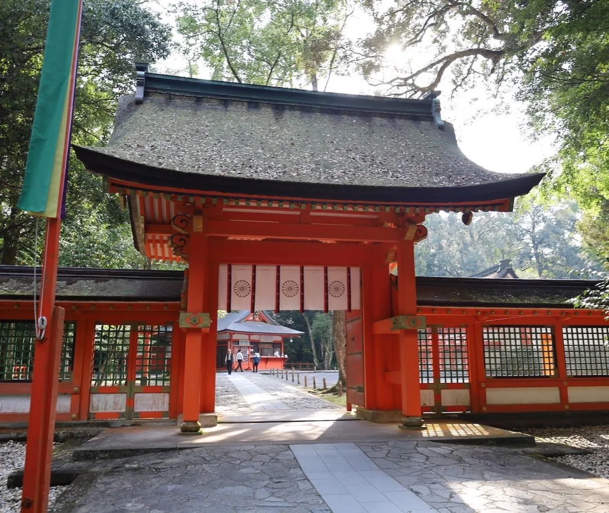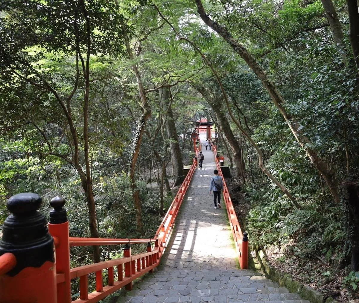 朱色の美しさ、木々の隙間から溢れる陽の光が神々しくもありました。