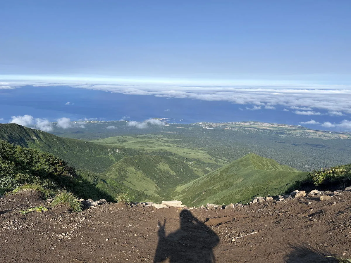 眼下には登ってきた道のりや利尻の町