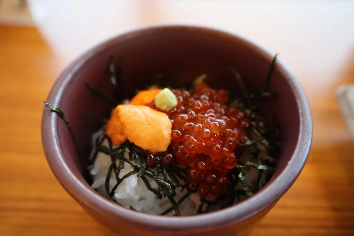 バフンウニのお刺身に、ウニといくらの炊き込みご飯など