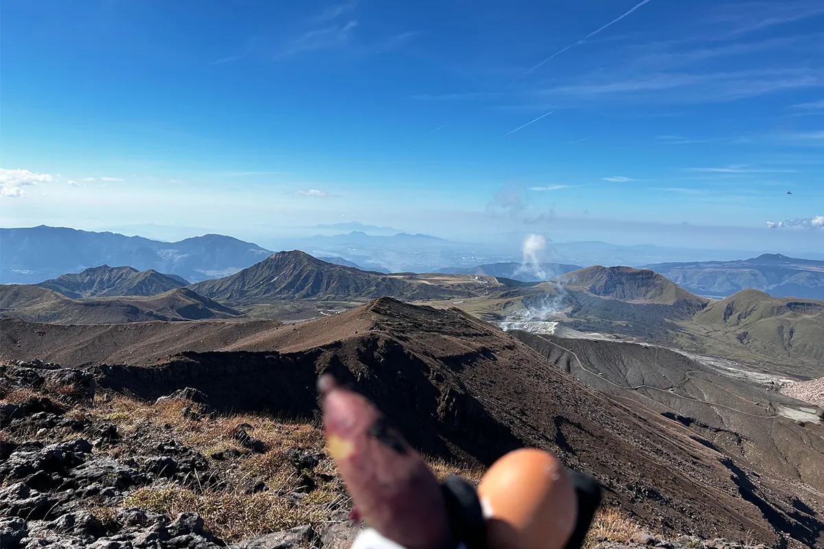 高岳では、宿でいただいた焼き芋と温泉卵を食べました。
