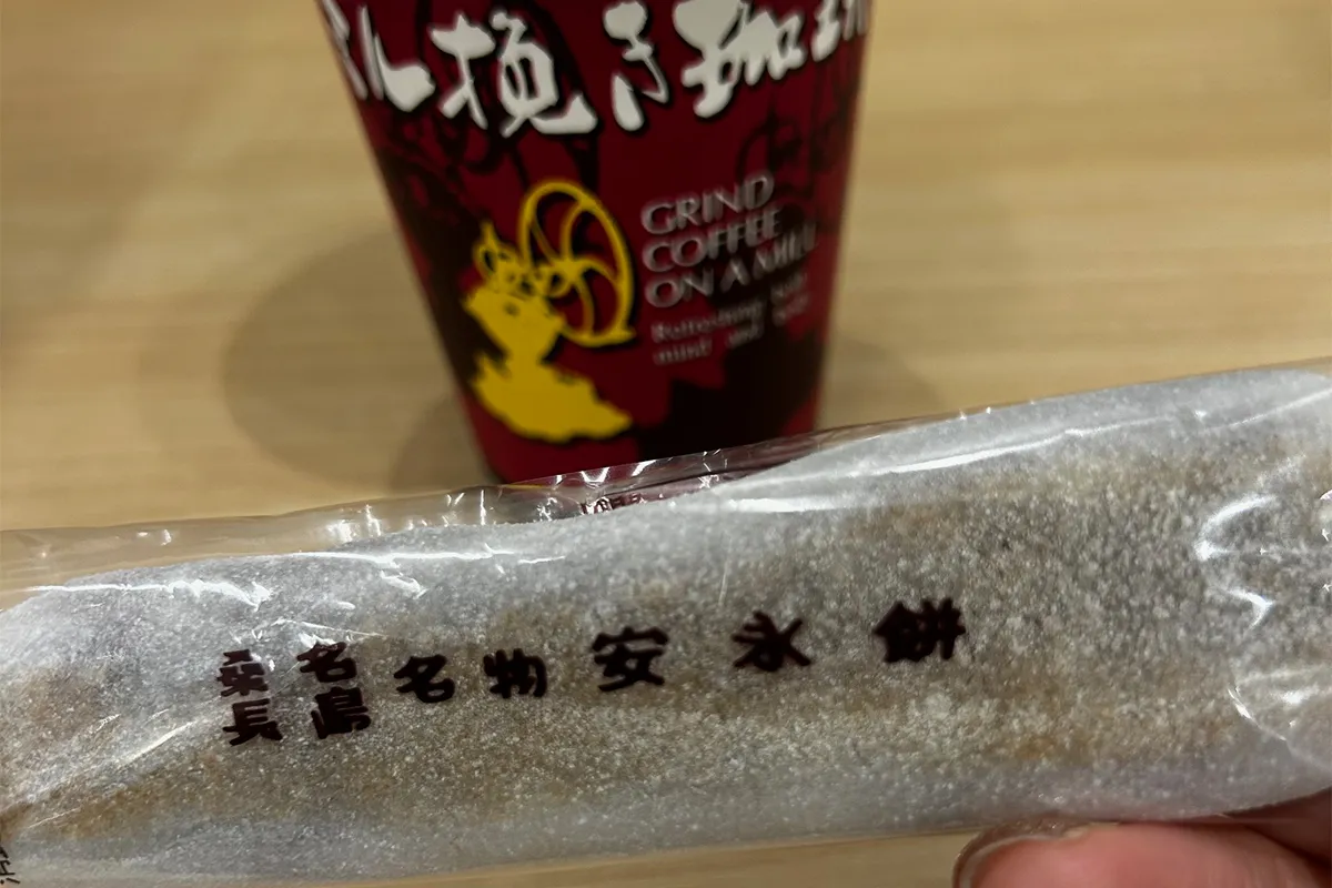 薄く長く伸ばされたお餅の中に粒あんが入っているんですが