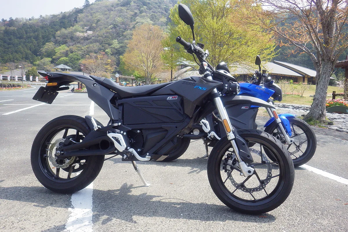 今回ボクが乗るバイクは、岸本さんと青島さんからお借りする、アメリカ・シリコンバレーに本社がある、ゼロモーターサイクルズの、ネイキッドタイプの「SR」と、モタードの「FXS」だ。