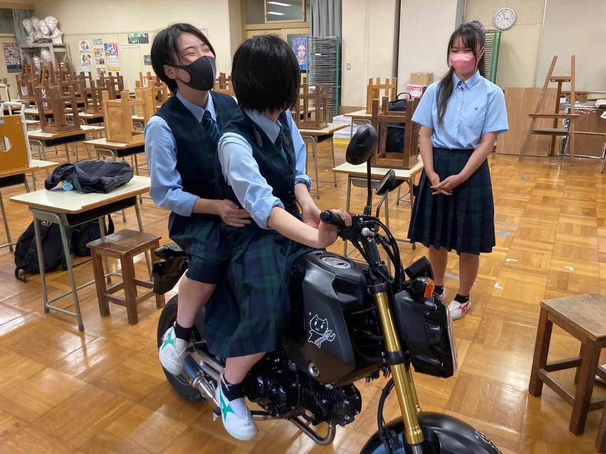 紹介するのは知徳高等学校の一例だが、美術を教える柴田寛志先生が学校に働きかけ、原研のグロムを美術室に入れて、皆でバイクのデザインを研究した。