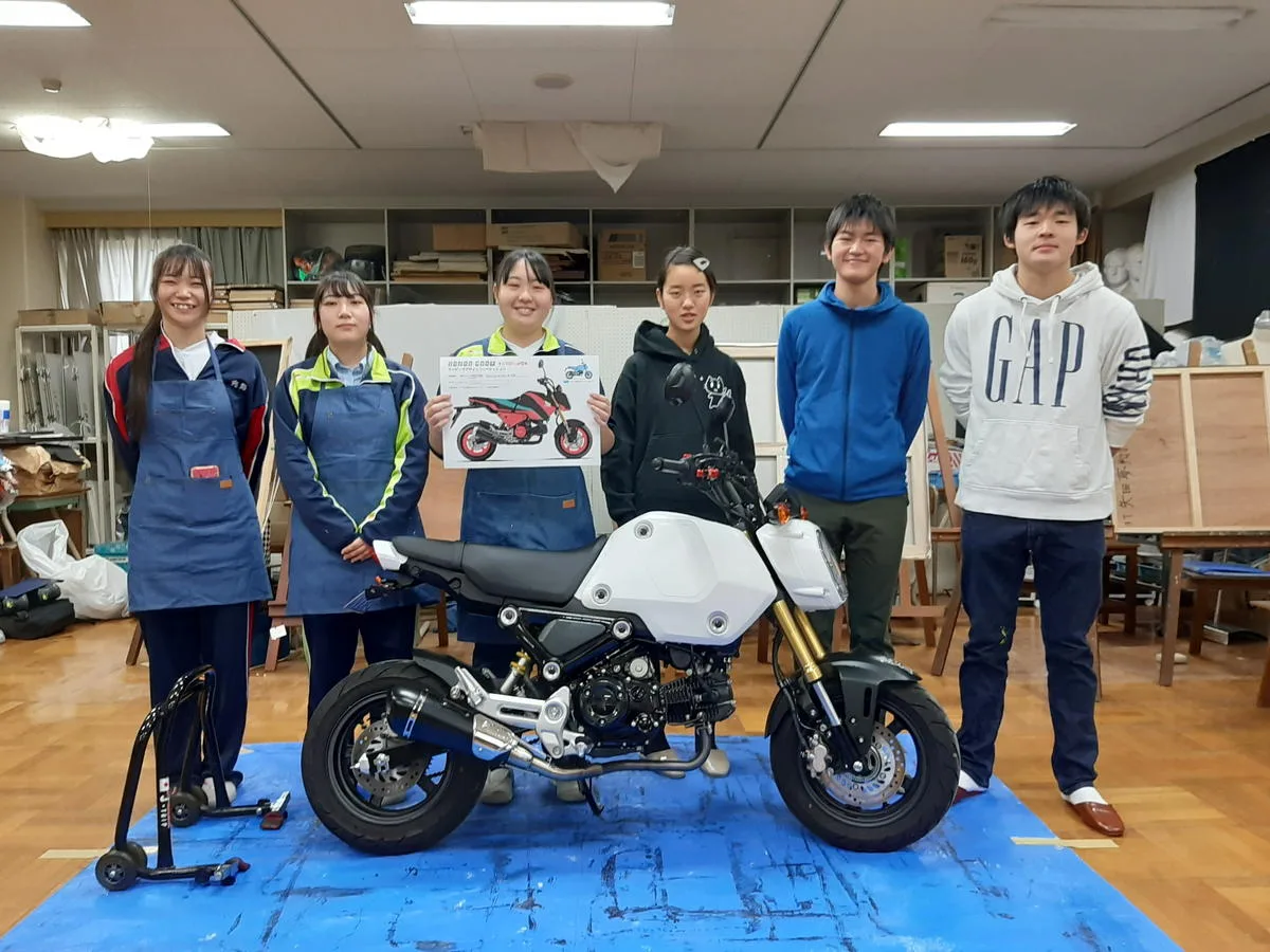 「実際のバイクを見てみたい!」という要望が多く、グロムの実車を各校に展示をして、バイクの細部の造りやデザインを確認できるようにした。