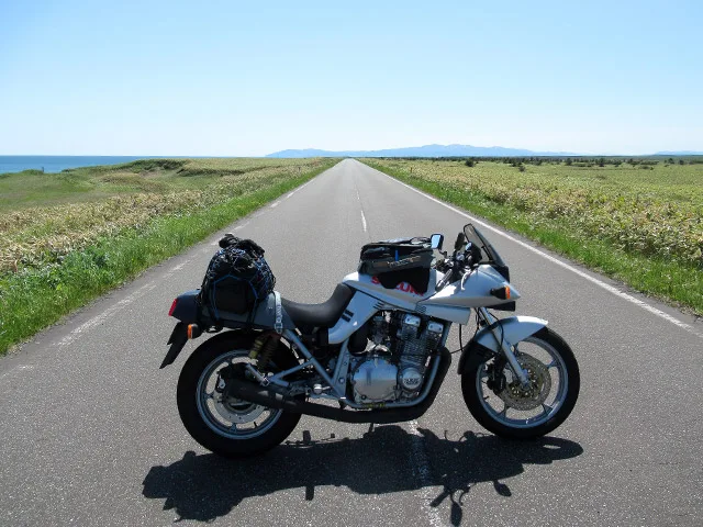 このエサヌカ線は、特に観光地というわけでもなく、名所があるわけでもない。ここには、ツーリングライダーが大好きな“まっすぐな一本道”があるだけだ。今回のツーリングでは、この道をクルマで走る観光客は見なかったし、幸か不幸かすれ違ったクルマは1台もいなかった。ここは恐らく、オートバイ乗りだけが好んで走る“名所”となっているだけのような気がする。このまま、地元民とライダー以外の人たちに知られることもなく、知る人ぞ知る(?)秘密の絶景ポイントであって欲しい。