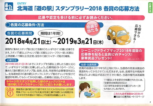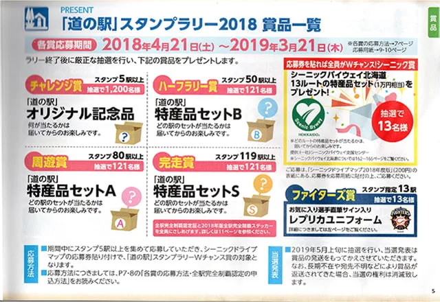スタンプラリーのチャレンジ期間は応募期間と同じとなっている。夏のツーリングが終わって北海道最後の道の駅でこの賞に応募してもよいし、ウインタースポーツ等で冬に渡道する予定があればスタンプブックをいったん持ち帰り、冬にスタンプを増やして応募してもよいだろう。ちなみに、2018年版スタンプブックを所持しているかたは、”全駅完全制覇認定”ならば申込が2020年3月22日までと、2年間の猶予があるので、まだまだチャンスがある!