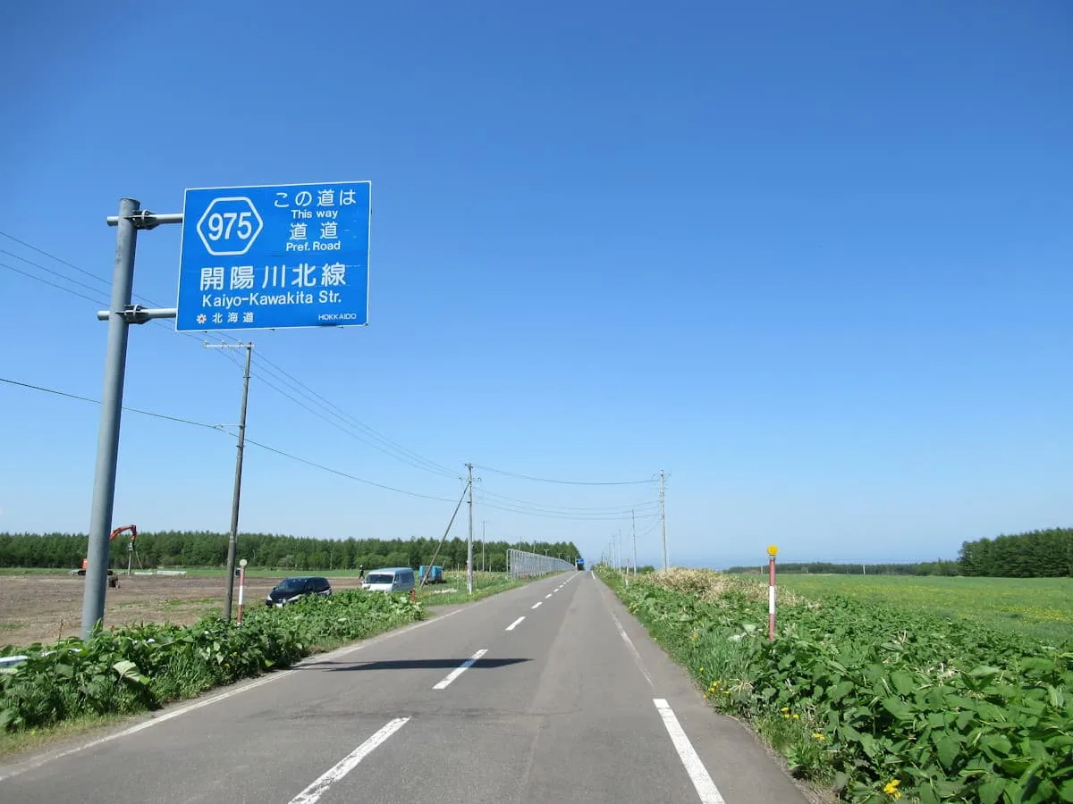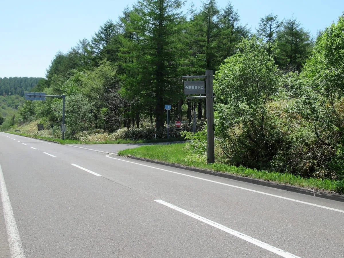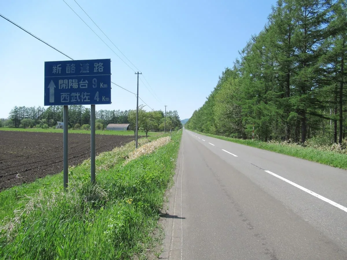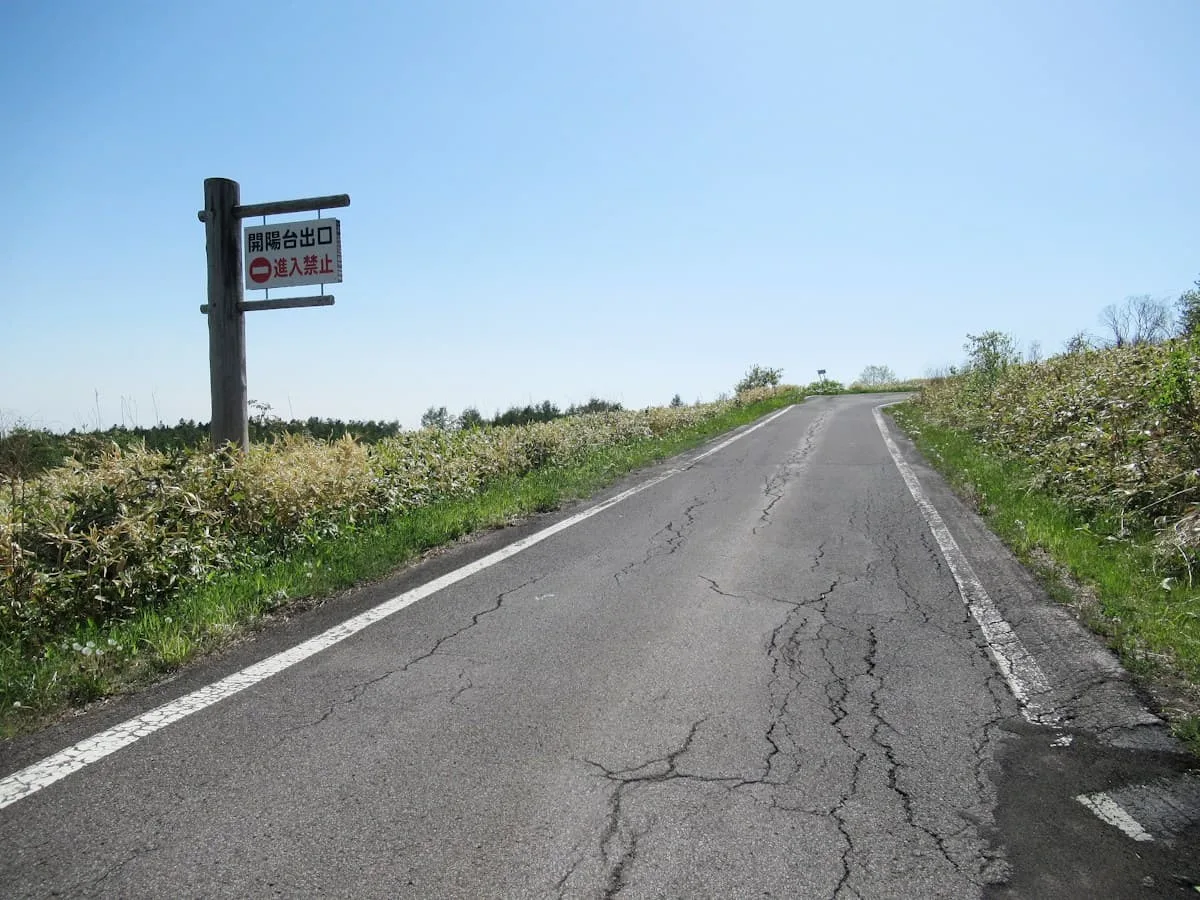 開陽台へと続く道は、北海道らしい一直線の道が多い。ところどころに写真のような案内板が出ているので、スピードは控えめにしてしっかり確認していくのがいい