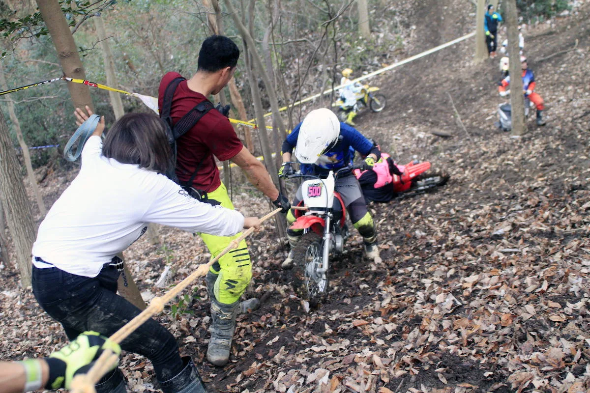 こんな1周も回れずに終わってしまうレースのどこが楽しいのか、この文面だけでは理解するのは難しいと思う。百聞は一見にしかず! 現地で見学してみないとわからないかもしれない。レースの和気あいあいとした雰囲気やドS(難易度の高いコースを設定する)の主催者とドM(難易度の高いコースと分かっていながらも参加する)の参加者たちの、笑いと熱い感動が溢れたレースを見ているだけで“自分も出てみたい!”と思ってしまうライダーが実際に多数いるということも理解できるかもしれない。旦那さまや彼氏の付き添いで来た女性が、次のレースにはエントリーしているなんてことの日常茶飯事! それもバイク免許がない女性だったりするから驚きだ。一度生で見てしまったらその楽しさが体感できたようだ。騙されたと思って、一度レース会場に足を運んでみて欲しい。