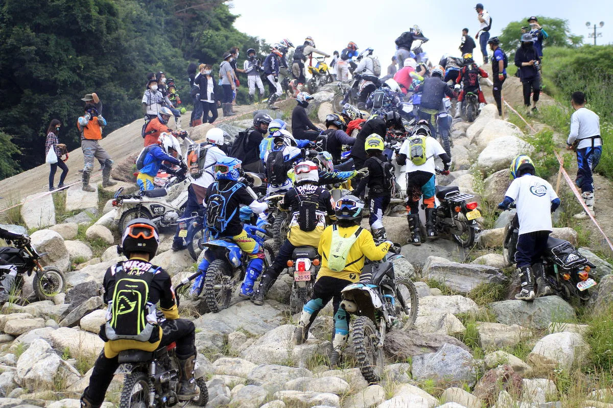 ハードエンデューロ界隈ではこのことを“押しごと”と呼んでいる(多く出場しているビジネスバイクがお仕事バイクであるので、この“お仕事”という言葉に掛けている…)。だから、レース時間中にコースを1周も出来ない参加者が続出するのだ。しかしながら、レース時間が終了すると彼らは笑顔で互いに讃えあう。