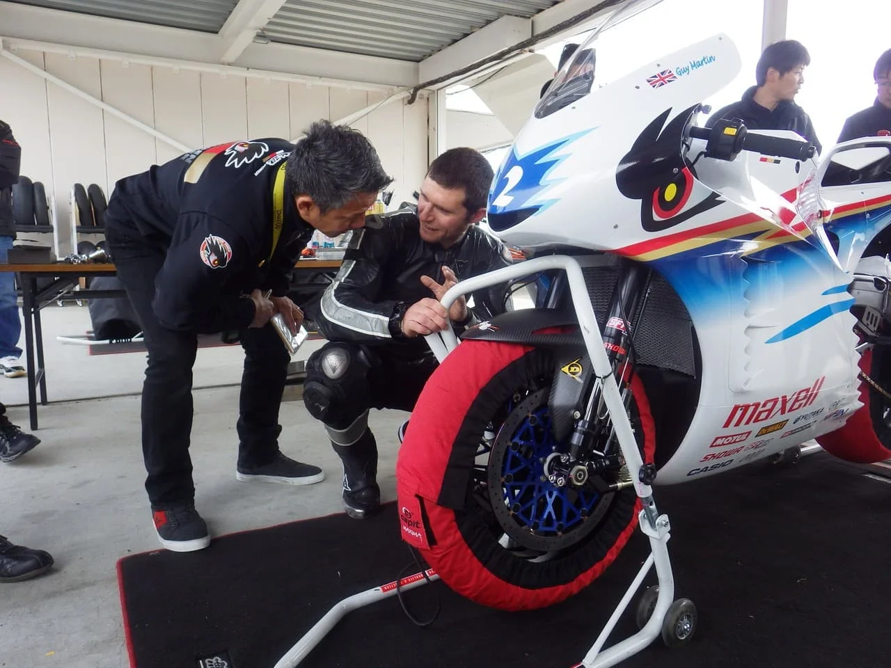 スパ太郎:宮城さんは、「神電六」の開発ライダーを務めているよ。ジョン選手やガイ選手たちから、ライダーの感覚的なチューニングポインを聞き出して、マシンセッティングの指示をメカニックさんにわかり易く、的確に伝える重要な役割をしているんだよ!