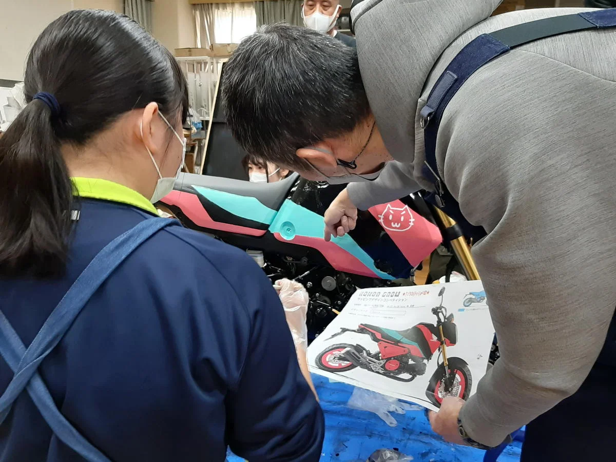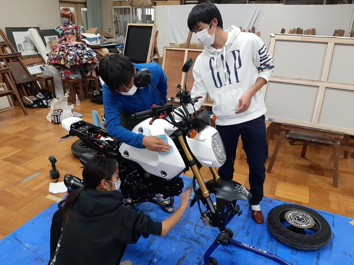 グロム・デザインコンテスト最終回!ついにグロムをペイントしていきます。車両をプレゼントした大槻ひびきさんも参加して、作業スタートです!パーツを外して脱脂作業・塗料の配合から行うのですが、今日1日で終わるのか…?