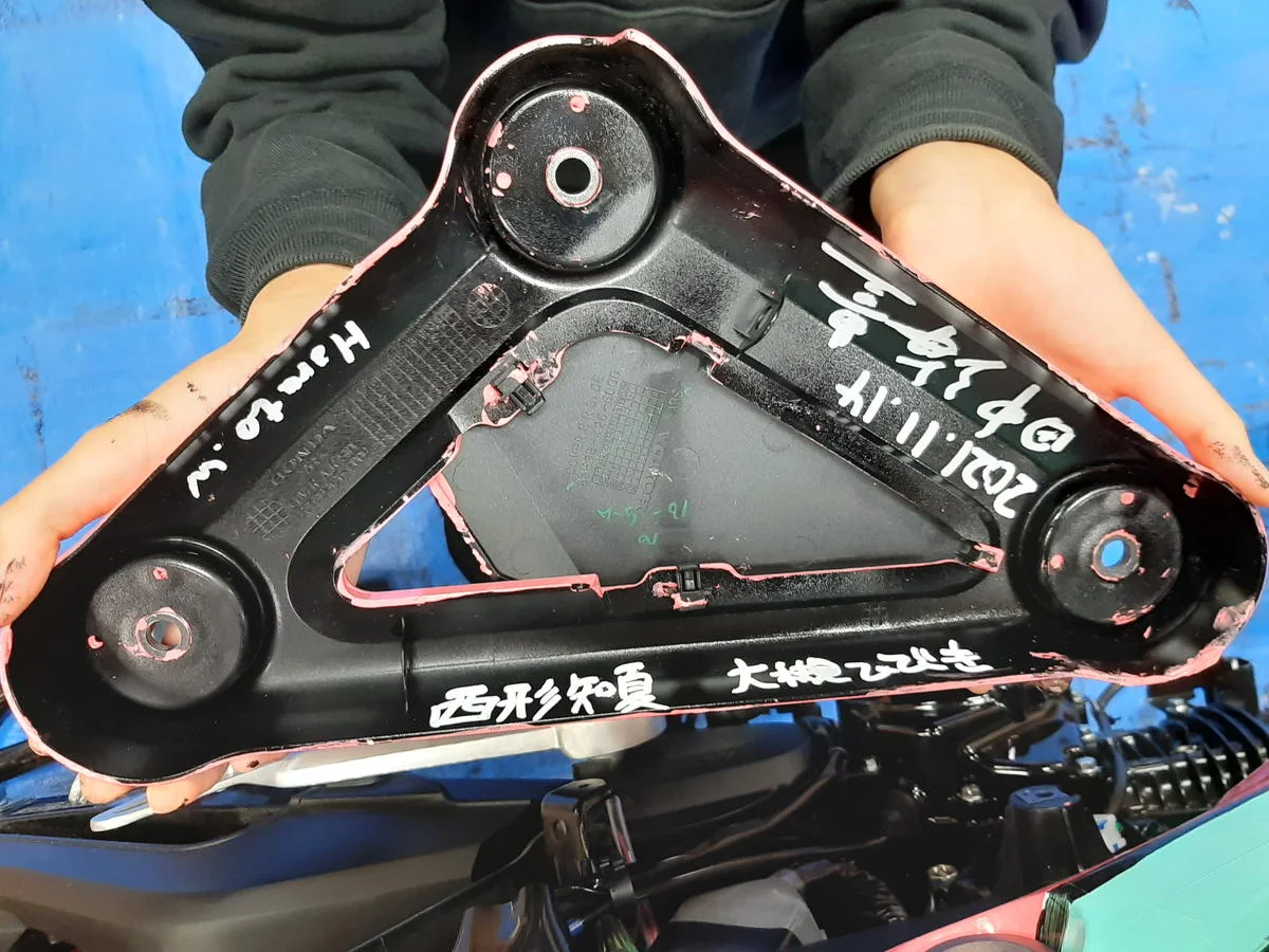 早速、タンク部やシェラウドの凹凸、ヘッドライト回りやシート部の塗装で修正作業が発生!