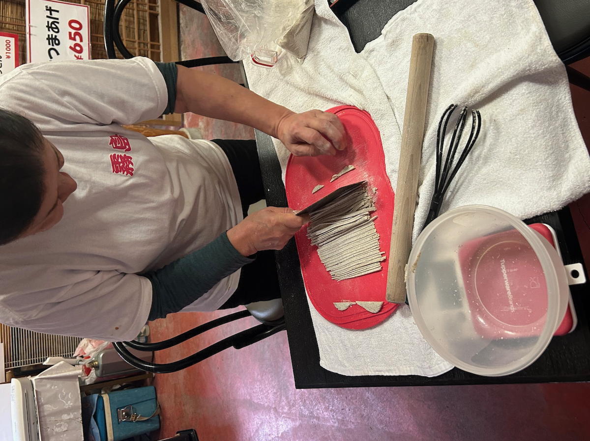 そこでは女将さん自ら蕎麦をこねて作っていたので